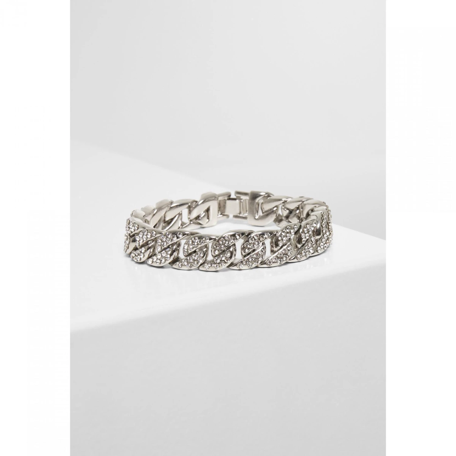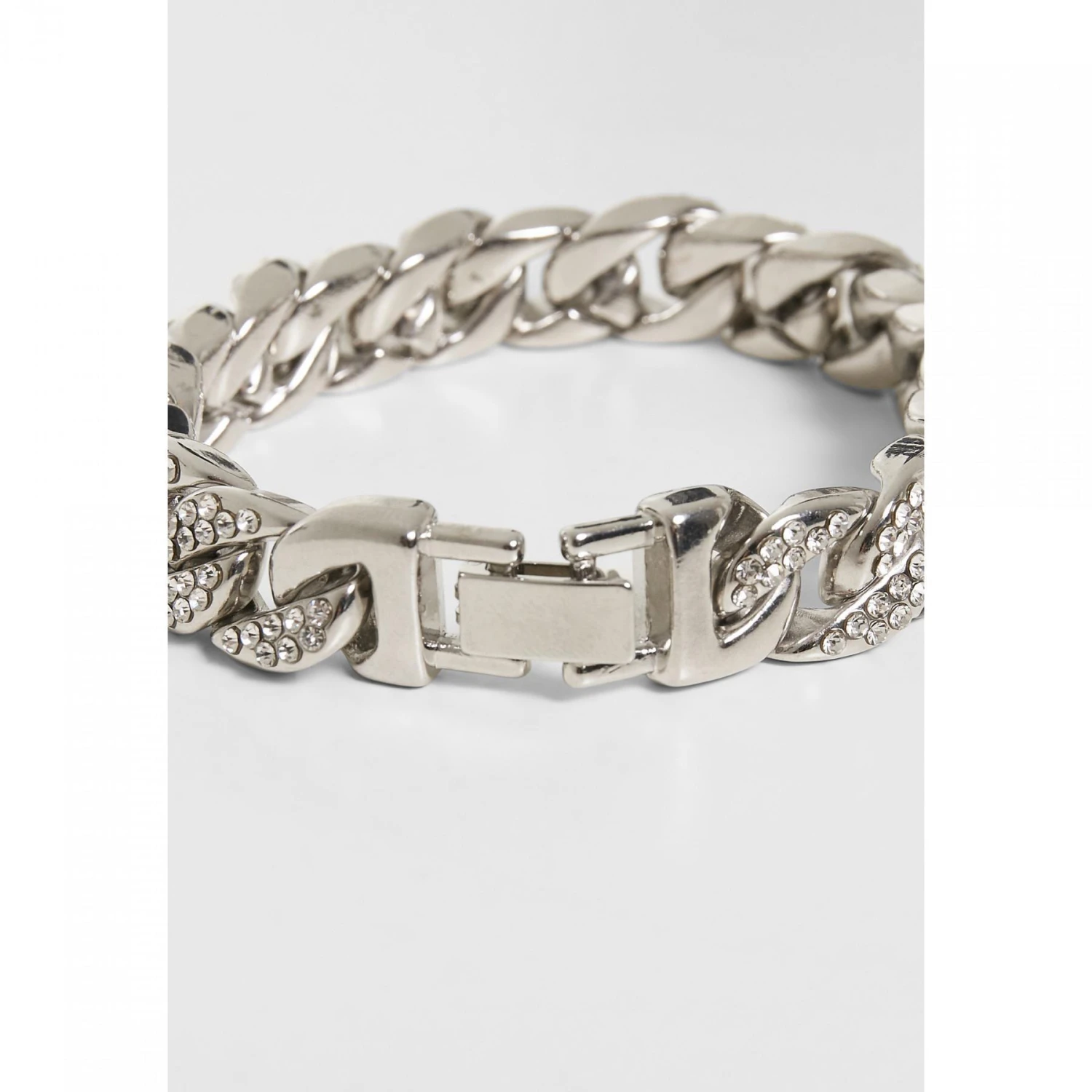 Houding! Deze armband met grote schakels maakt een statement. De zware gouden schakels zijn met elkaar verweven en bezaaid met kleine glazen steentjes voor nog meer stijl. Koop het, draag het en geniet van een briljante boost aan je streetwear. maat: S/M=19cm L/XL=22cm