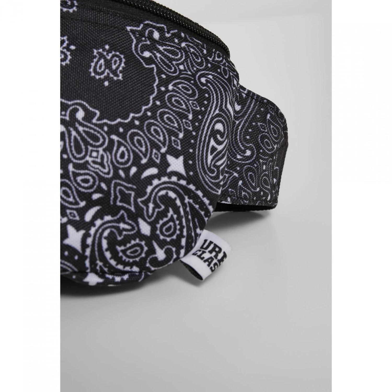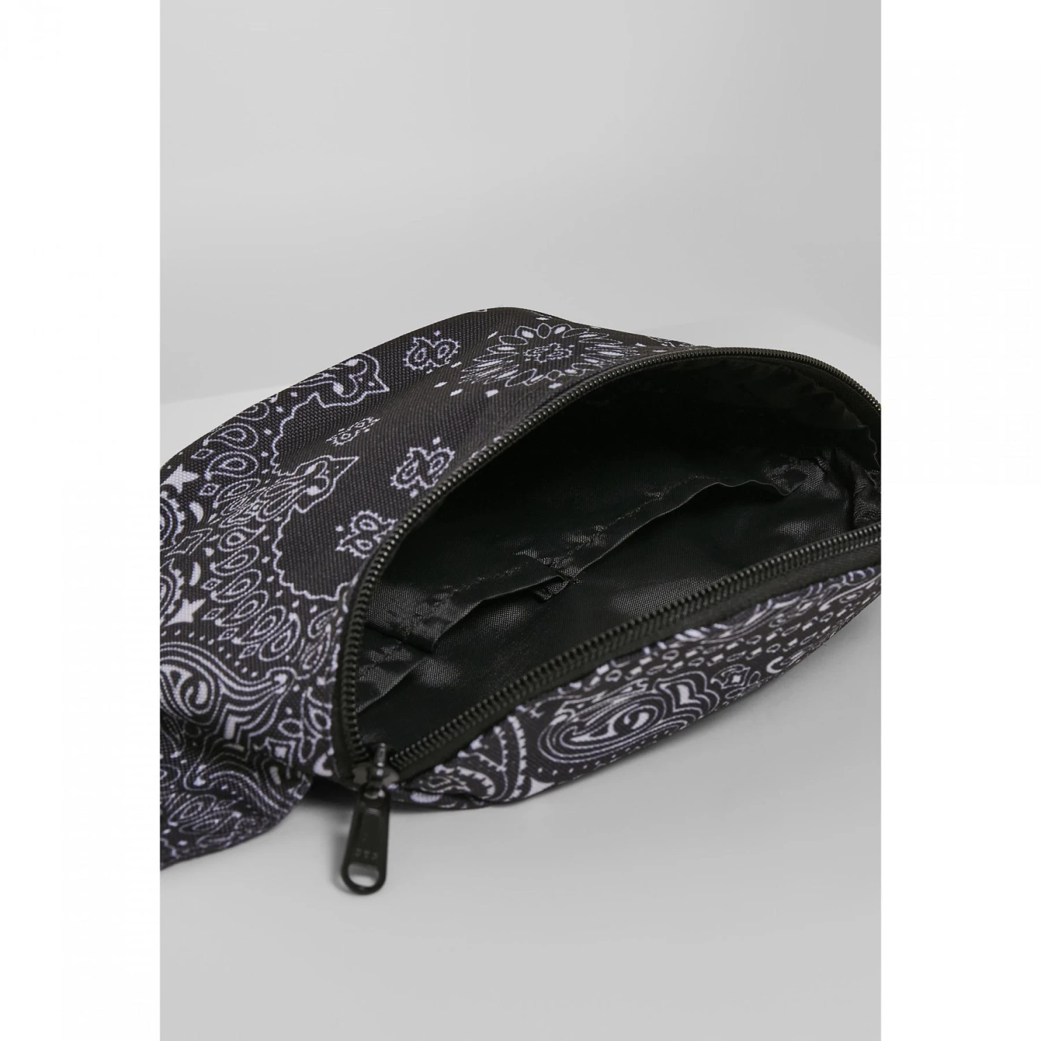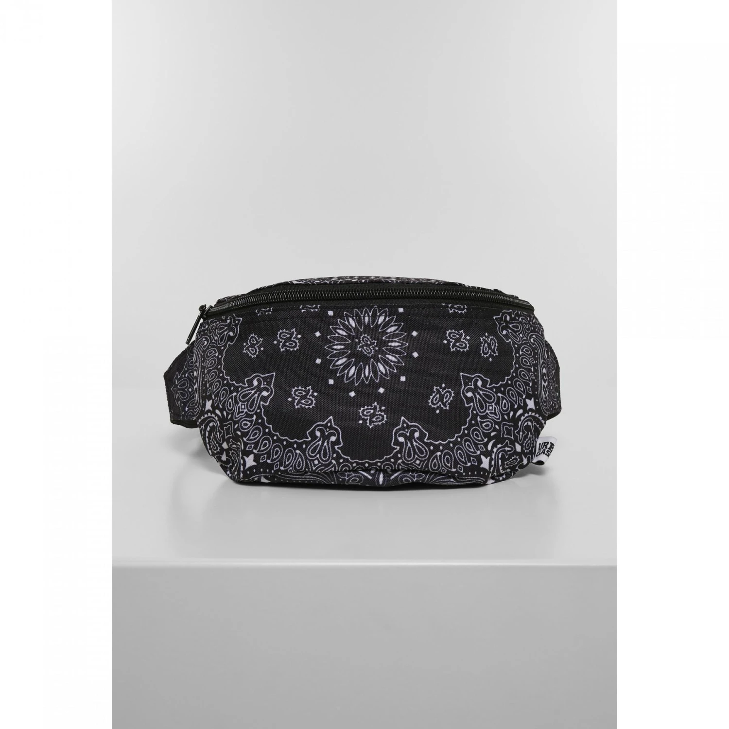 De hippe tas in zwart met een filigraan bandana motief rondom geeft een urban en trendy look. De bovenzijde is voorzien van een stevige ritssluiting, terwijl de binnenzijde twee handige vakken biedt om bij elkaar te houden wat bij elkaar gehouden moet worden. Een verstelbare tailleband aan de achterkant met een beproefde drukknoopsluiting zorgt voor een stevige pasvorm. De stijl wordt gecompleteerd door een vlagvormig label met Urban Classics opschrift. De afmetingen van de Bandana Print Heuptas zijn 23 x 7,5 x 13,5 cm.Oberstoff 1: 100% Polyester