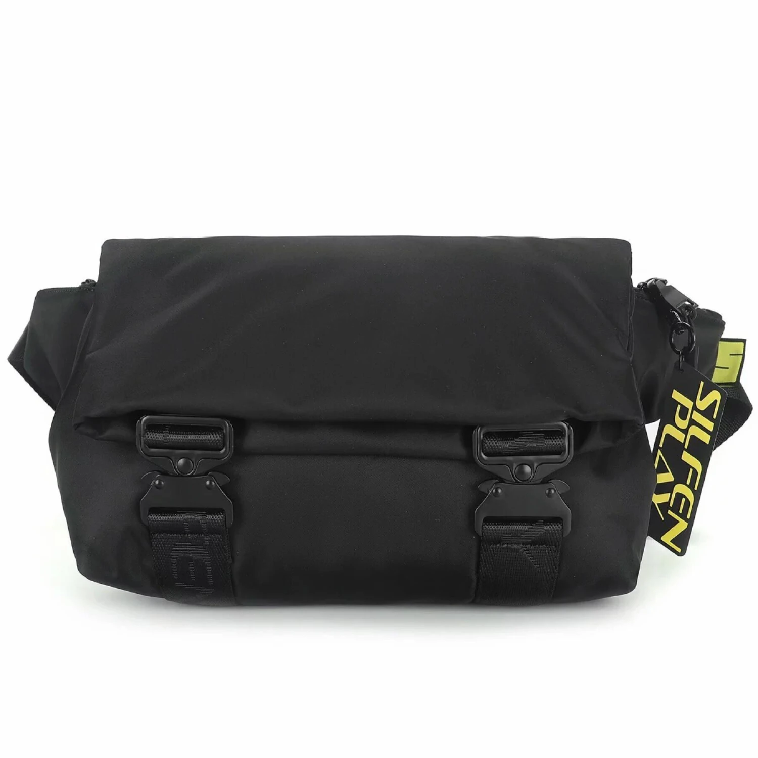 De DENIS tas is de perfecte rugzak voor sportievelingen en mensen die veel onderweg zijn. Dankzij de verstelbare riem kan de tas zowel als schoudertas als heuptas worden gebruikt, wanneer je je handen vrij wilt houden, wilt gaan hardlopen of je spullen mee wilt nemen tijdens een fietstocht. Deze ruime tas heeft twee zijvakken, een vak aan de binnenkant van de klep en twee vakken in het hoofdvak. De rugzak is versierd met zwarte “SILFEN PLAY ” banden, onze zwarte PLAY gespen, het geweven “SILFEN PLAY ” label in het zijvak en natuurlijk onze “SILFEN PLAY ” rubberen sleutelhanger.