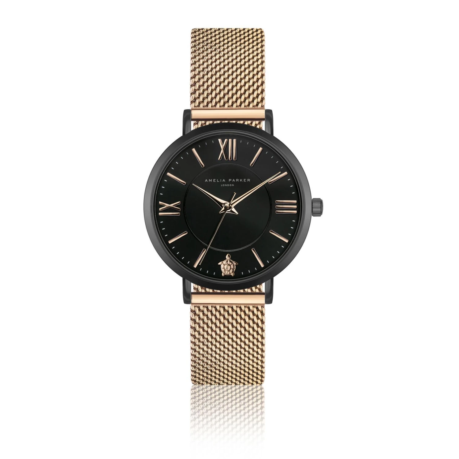 Delicaat met scherpe kleurcontrasten tussen gitzwart en goud rose. Geïnspireerd door de krachten van het getij, heeft Amelia Parker dit uurwerk ontworpen om net zo magnetisch te zijn als de vrouwen die het dragen.