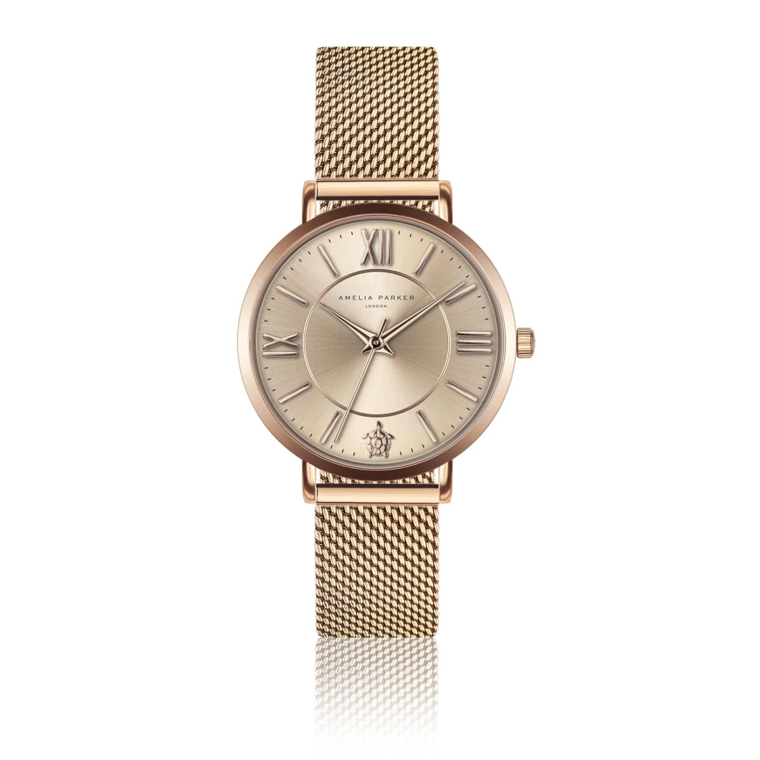 Speciaal ontworpen voor liefhebbers van boeiende sieradenhorloges. Geheel in goud rose glinsterend, maar onmiskenbaar Amelia Parker, is het gezet met het exclusieve juweel van de handgesneden tortue zee.