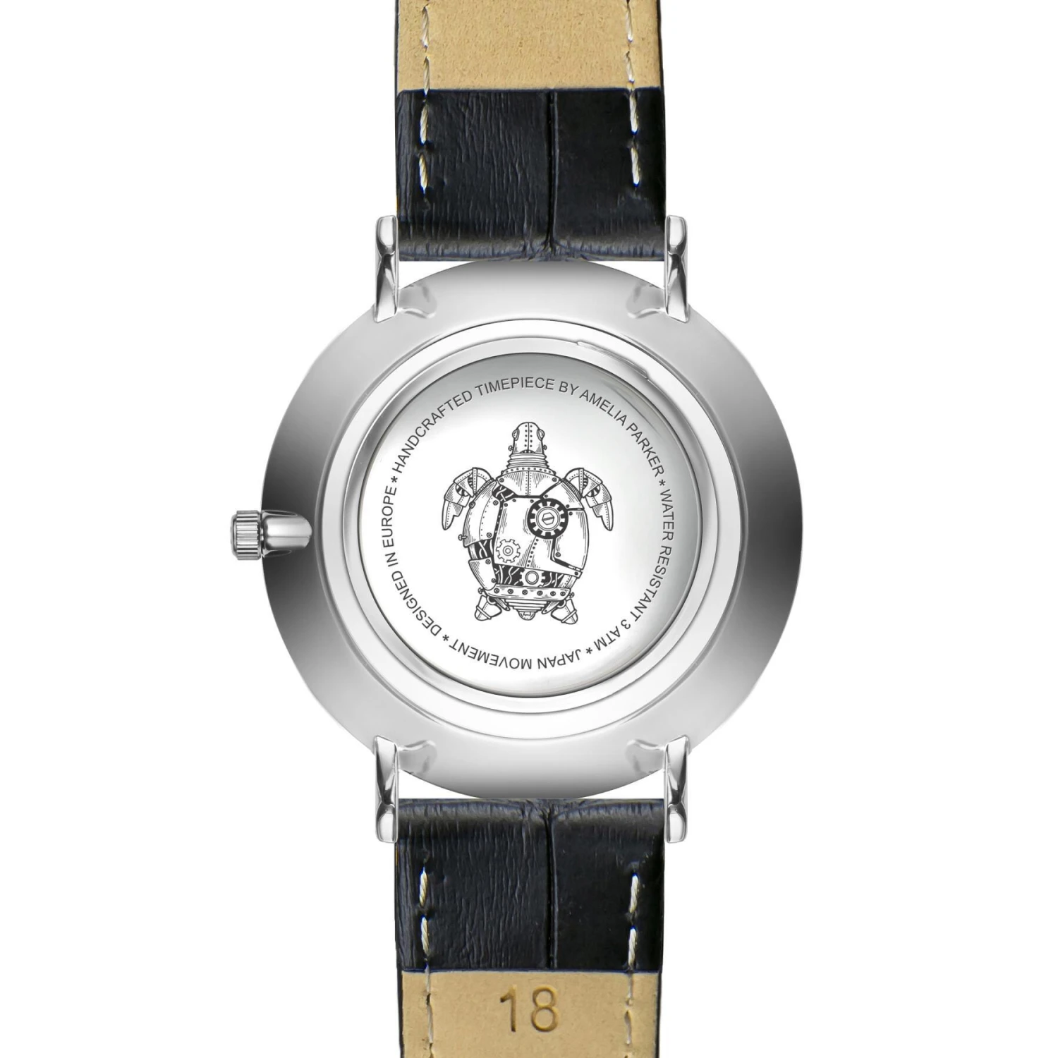 Als je onze Sea Turtle en Rose Turtle stukken leuk vond, weten we zeker dat je ook ons zilveren Sand Turtle horloge leuk zult vinden! De witte wijzerplaat van de Sand Turtle met de handgemaakte zilveren tortue vertegenwoordigt de schoonheid en esthetiek van de natuur.