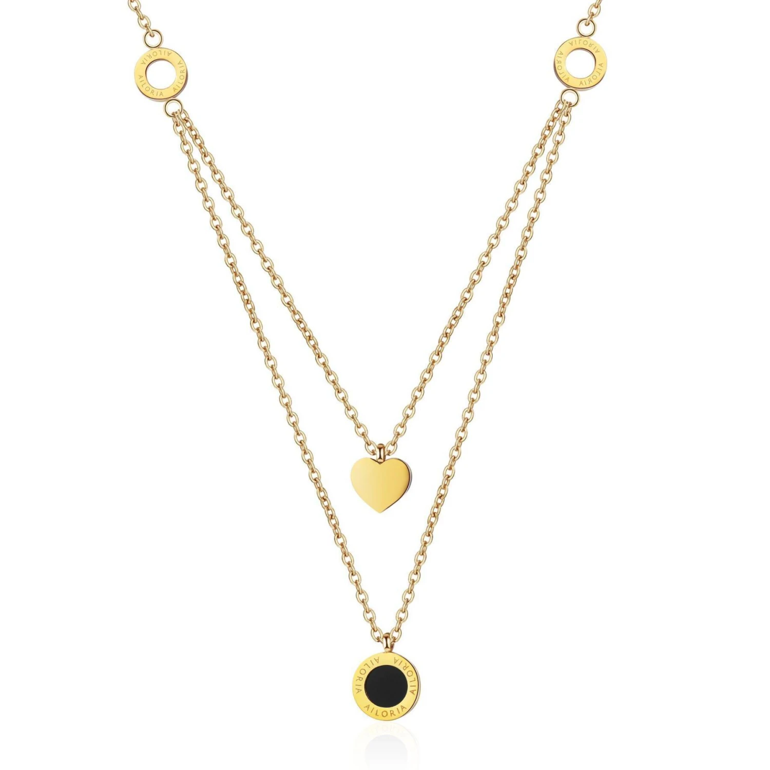 De charmante ketting met twee rijen ringen en een hartje is een modieus accessoire dat voor elke gelegenheid gedragen kan worden.