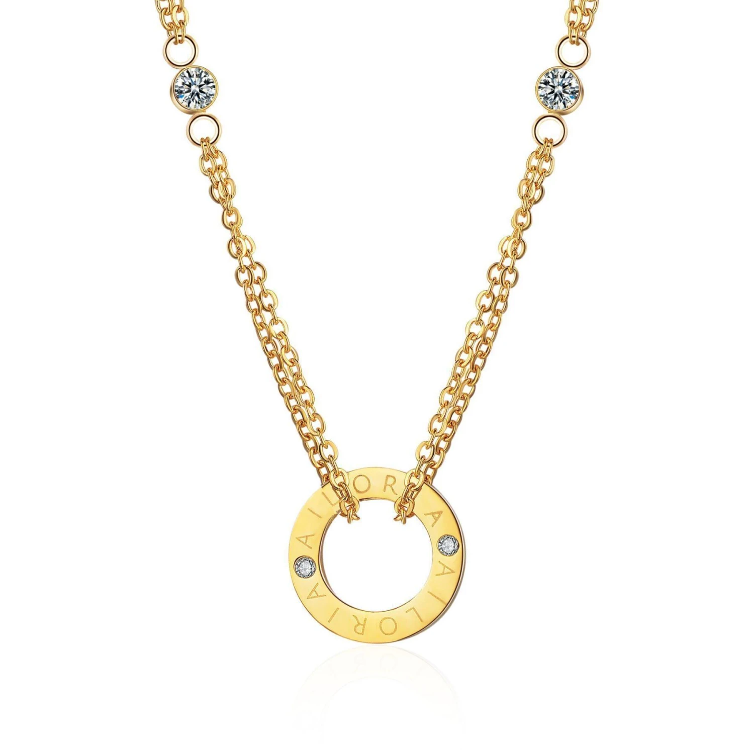 Een charmante ketting met twee rijen die bij elke gelegenheid gedragen kan worden. De prachtige combinatie van glanzend roestvrij staal, zirkonia van hoge kwaliteit en gebogen vormen drukt elke look en elk individueel karakter uit.