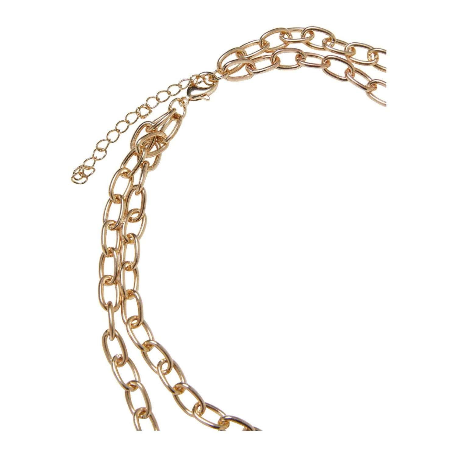Het gouden collier bestaat uit twee onderling verbonden rijen. Hun centrale element is een hartvormige hanger die in het midden hangt, die met de ketting is verbonden door een halfronde steun en zo doet denken aan een slot.Stof van schelp 1: 90% ijzer 10% zink