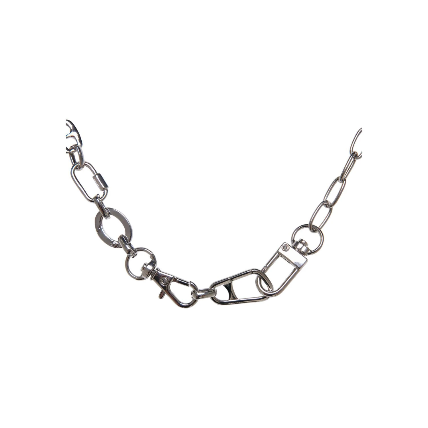 Gemaakt van ankerkettingen en een reeks verschillende karabijnhaken die in elkaar haken autres, heeft deze ketting een edgy uitstraling. Het accessoire is gemaakt van