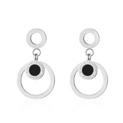 De prachtige bungelende oorbellen kunnen voor elke gelegenheid gedragen worden. De contrasterende materialen, gecombineerd met de eenvoud en elegantie van de vormen, creëren een spel van licht en schaduw.