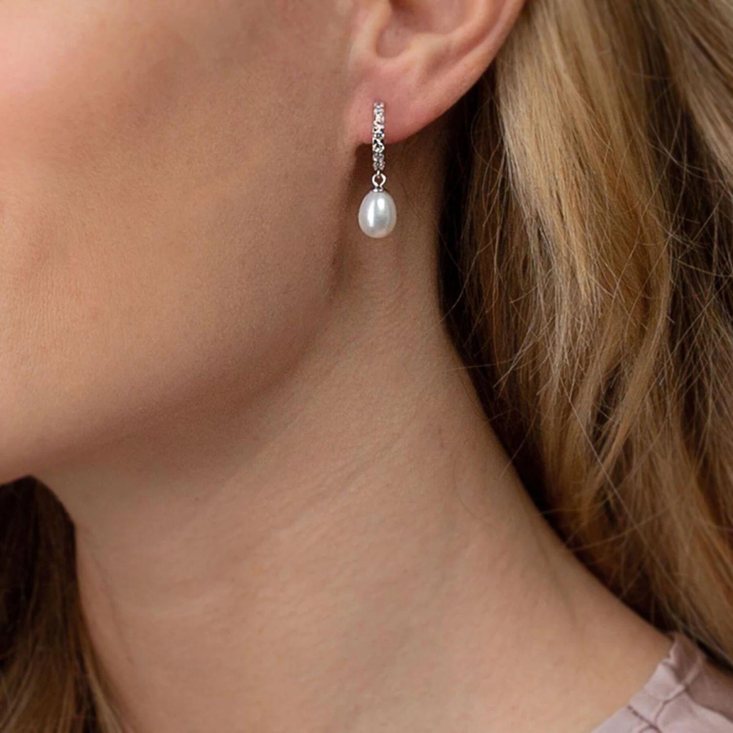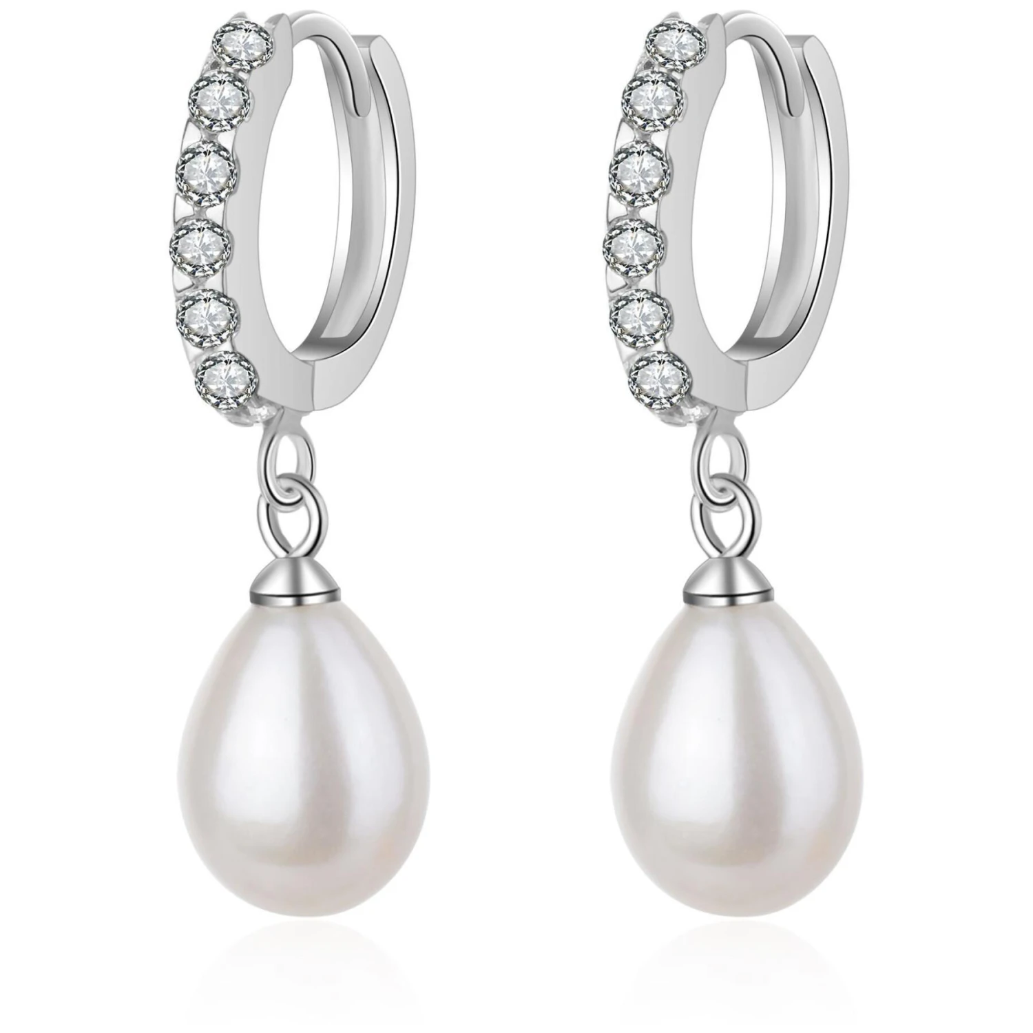 - Klassieke oorbellen in 925 sterling zilver met zirkonia en zoetwaterparel