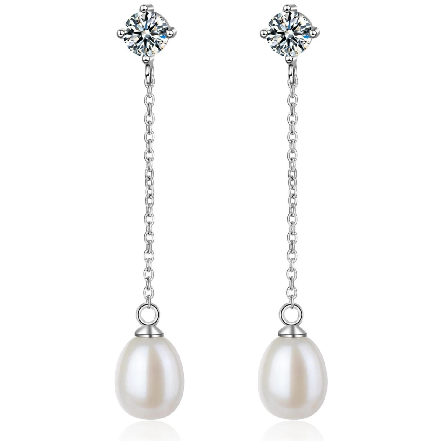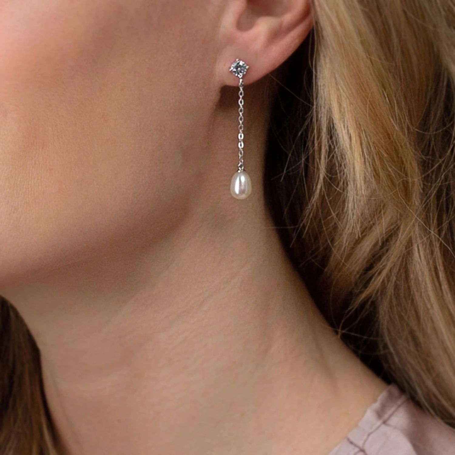 Klassieke oorbellen in 925 Sterling Zilver met zirkonia en zoetwaterparel