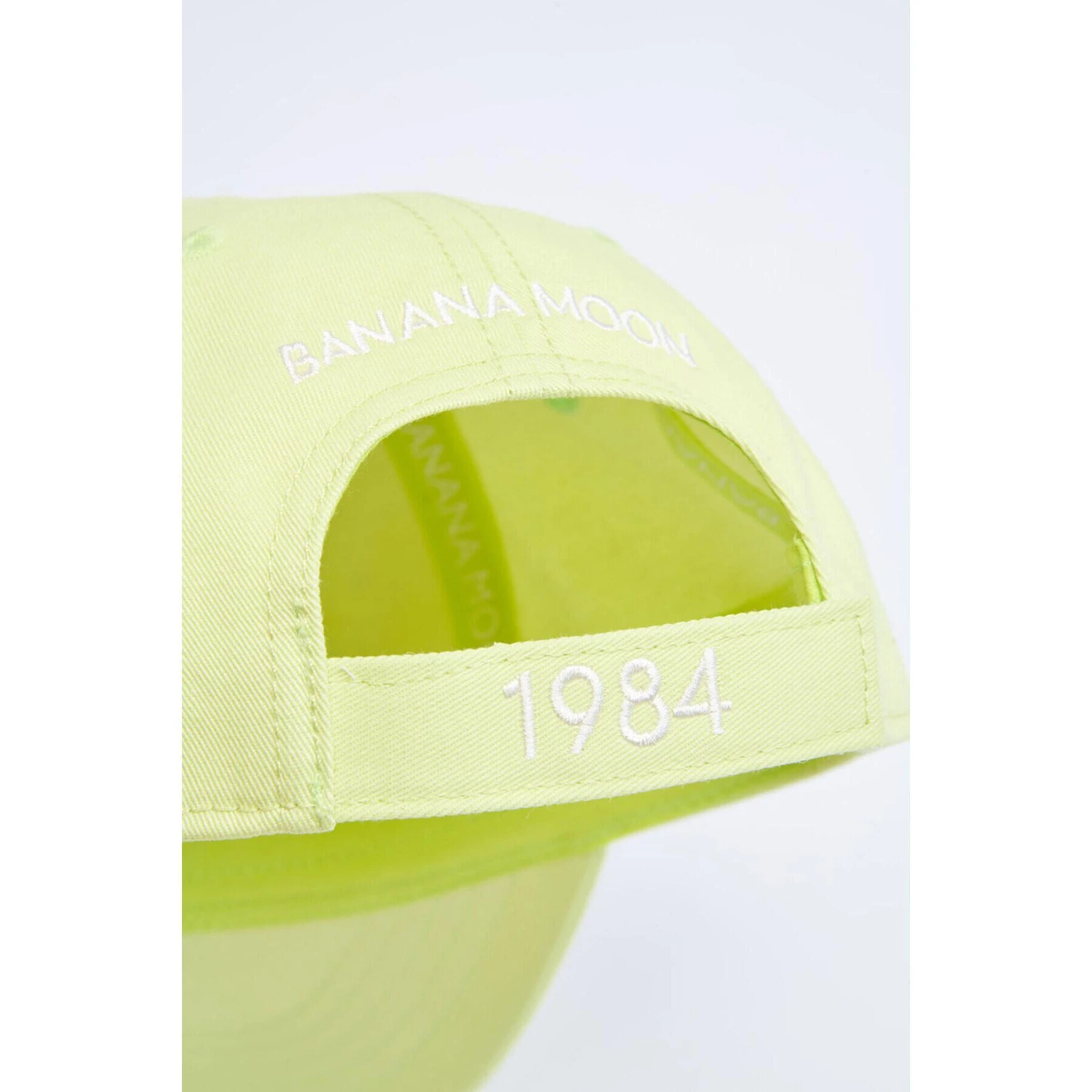 Deze anijskleurige pet heeft borduursels op de voorkant (Banana Moon Californian Sunwear) en achterkant (Banana Moon 1894).
