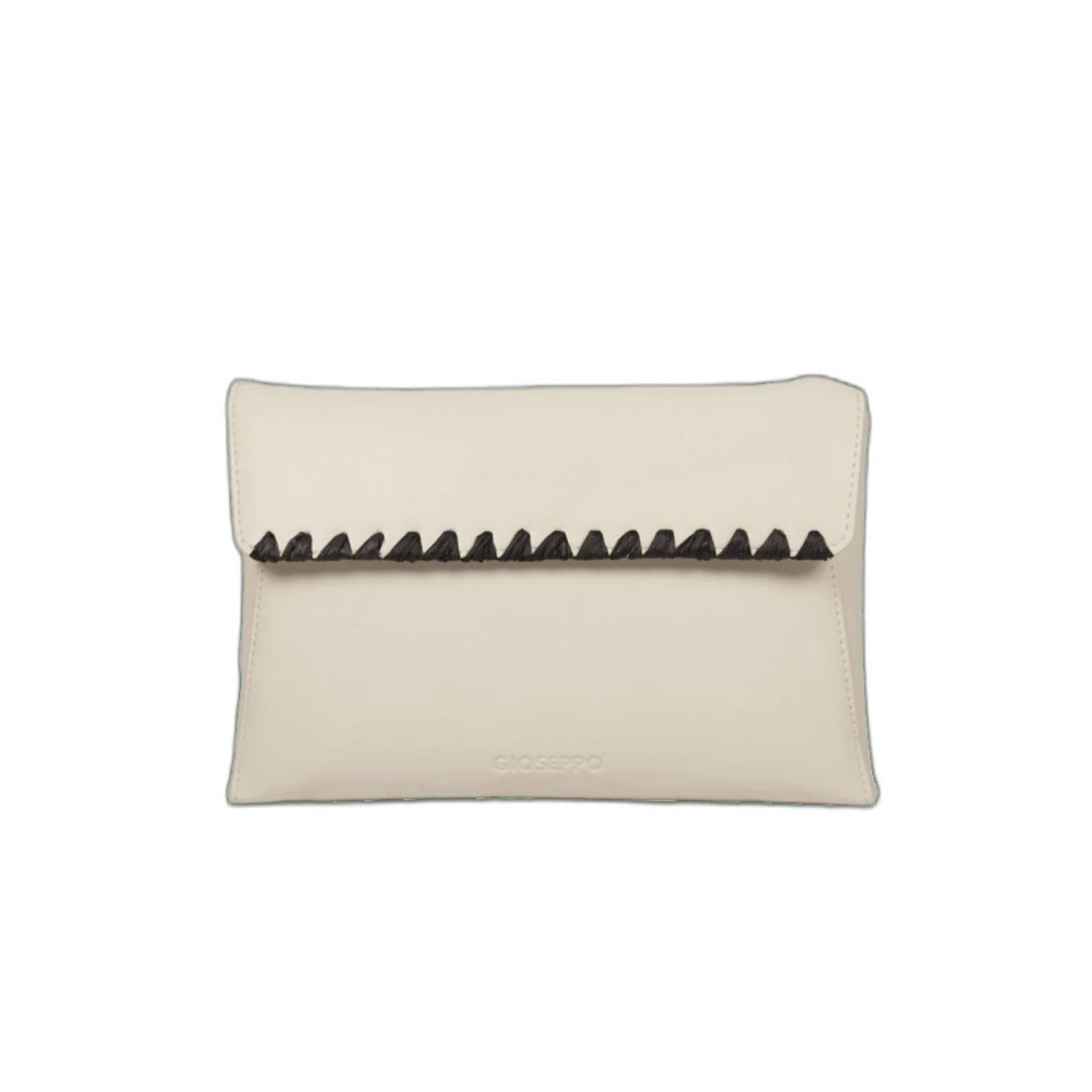 Onze favoriete details. Off-white portemonnee tas van gerecycled PU met verstelbare schouderriem en karabijnhaken. Contrasterende raffia linten. Gerecyclede PU-uitsparing en stoffen voering.