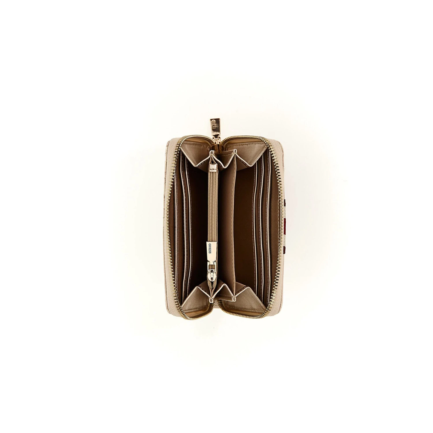 De Guess Nelka Medium Zip Around damesportemonnee is niet alleen praktisch, maar ook zeer functioneel. Dankzij de ritssluiting rond de hele portemonnee kun je er zeker van zijn dat je waardevolle documenten en spullen er niet uitvallen of zoekraken. Bovendien is hij dankzij het middelgrote formaat gemakkelijk mee te nemen en elke dag te gebruiken.