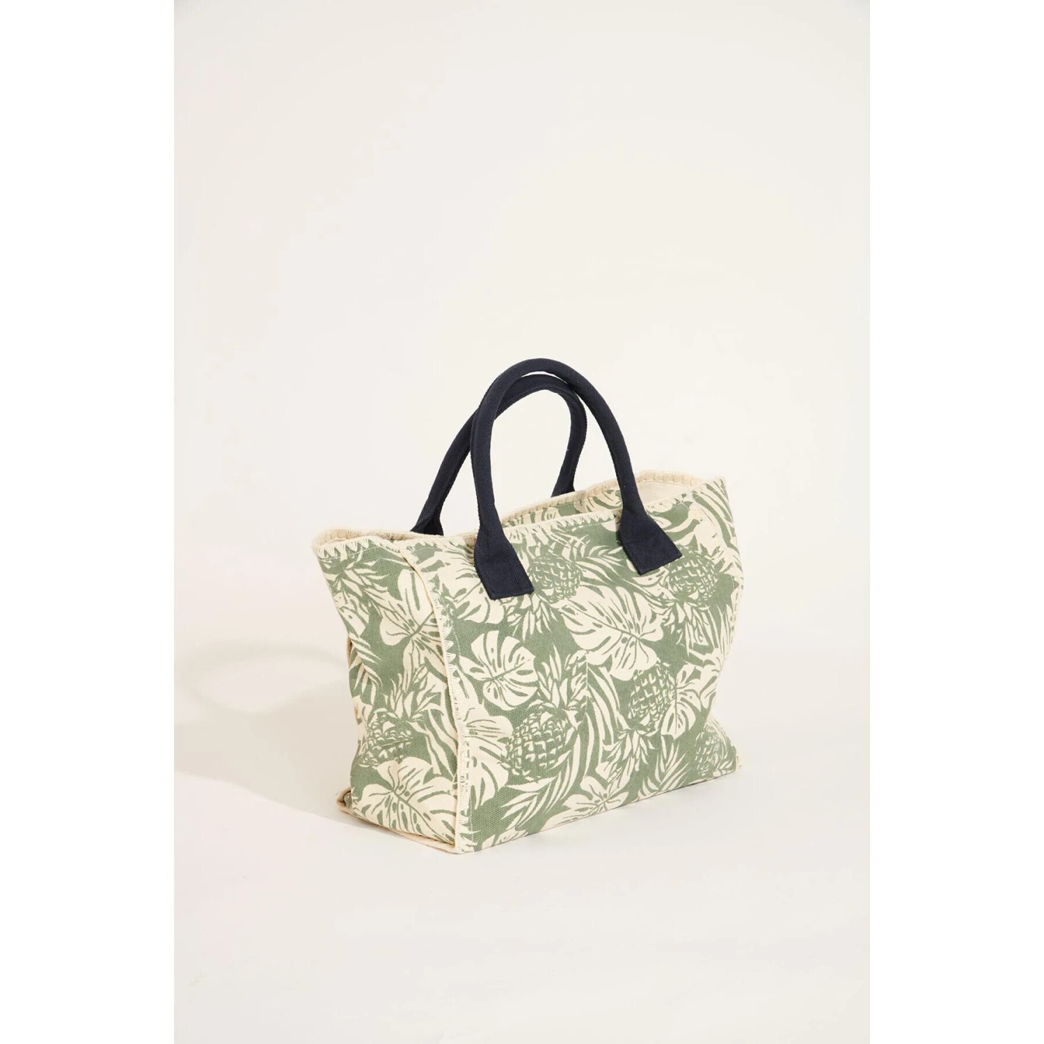Grote kaki gestreepte shopper Seta Lohan uit de zomercollectie van Banana Moon. Met zijn ideale formaat gaat deze draagtas overal met u mee, op het strand of in de stad, zelfs in het weekend!