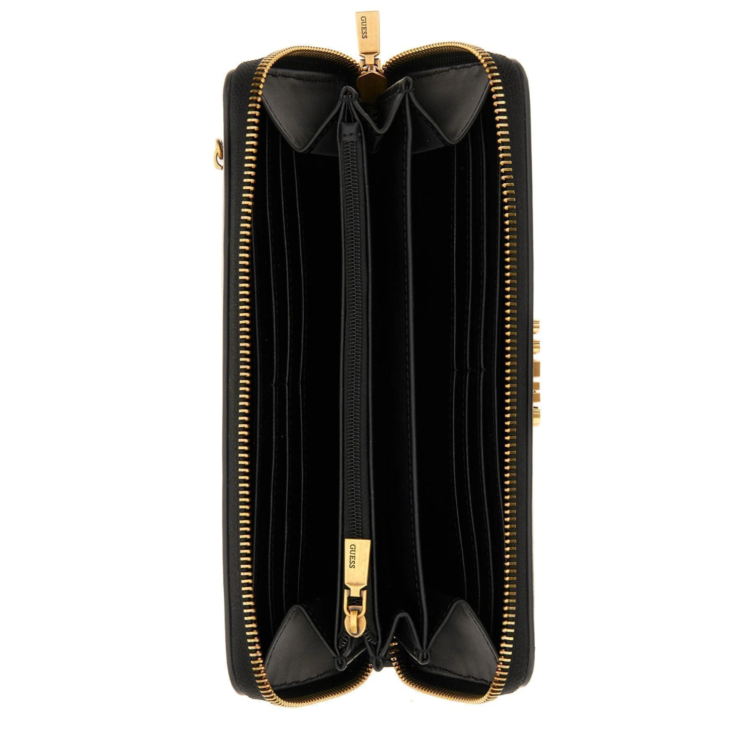 Portemonnee Guess Laurier van synthetisch glanzend krokodillenleer met afneembare riem en logo op de voorkant.