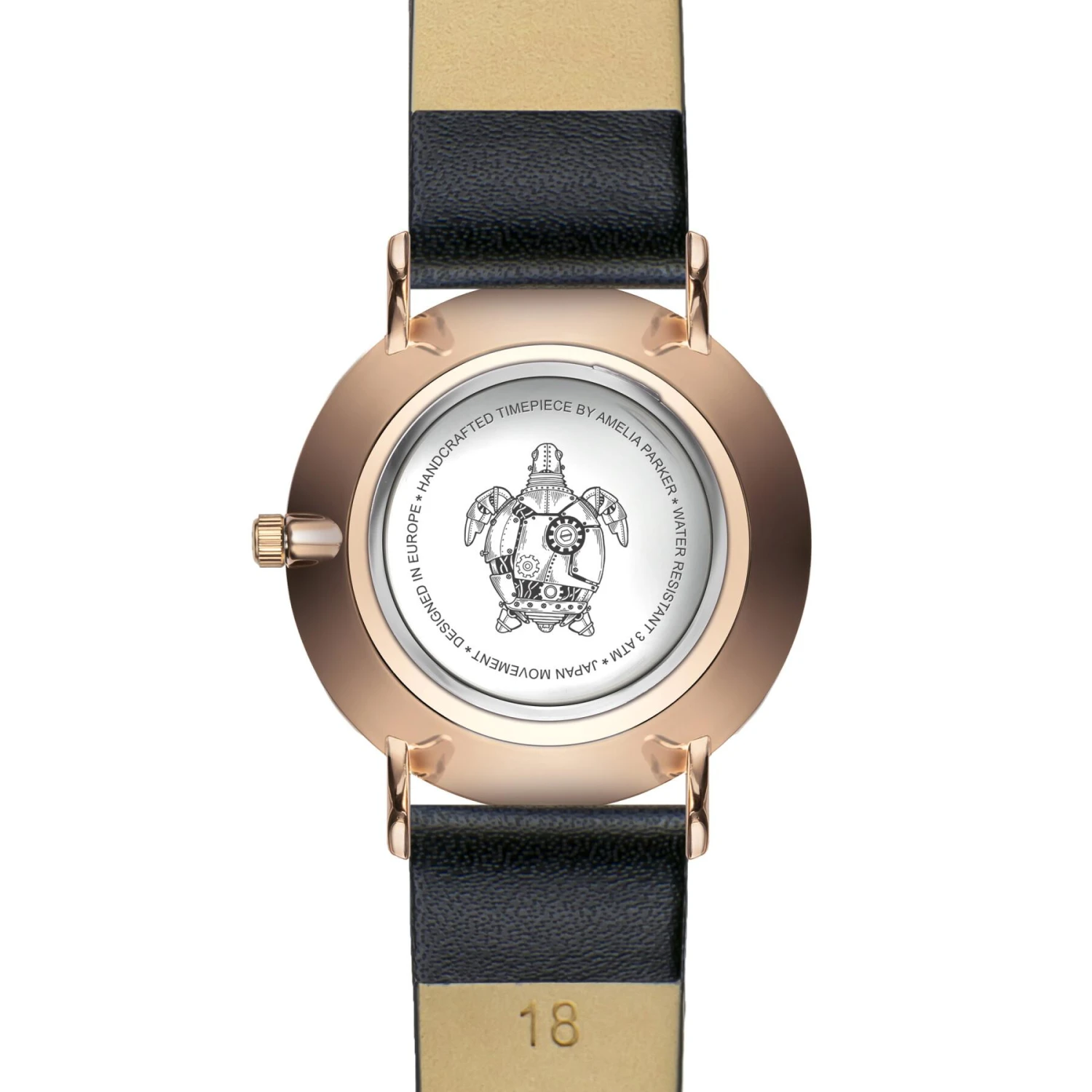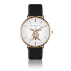 Lederen horloge voor vrouwen Amelia Parker Rose Turtle Black