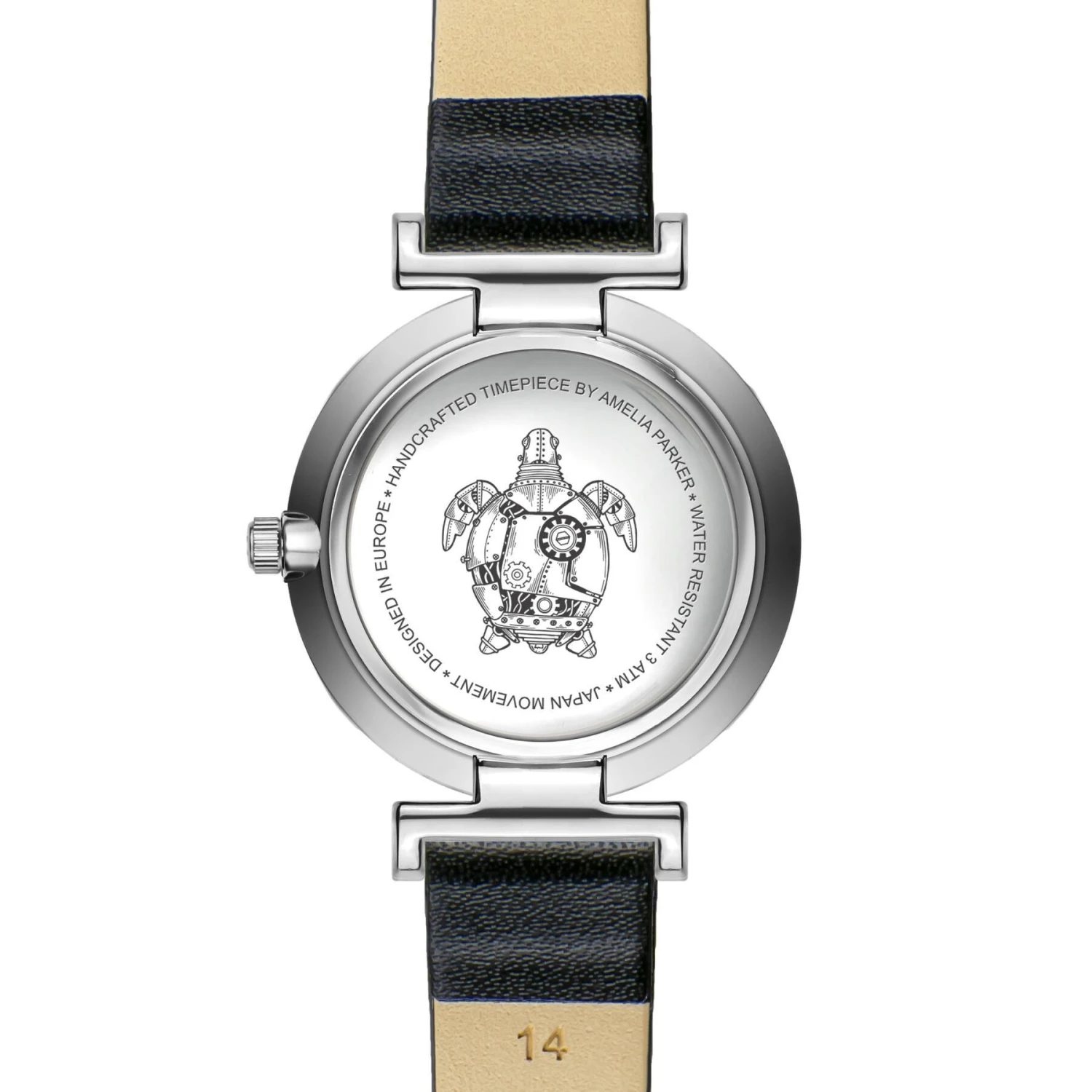 Geïnspireerd door de eenvoud van de kust waar water en zand elkaar ontmoeten, is White Shore een van de drie exclusieve ultra minimalistische horloges vanAmelia Parker. Met een kleine, lichtgevende parelmoer wijzerplaat met het kenmerkende tortue handgesneden zeejuweel, is het ontworpen voor liefhebbers van zoete lekkernijen.