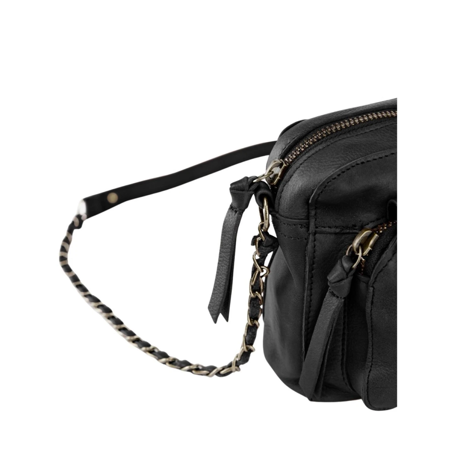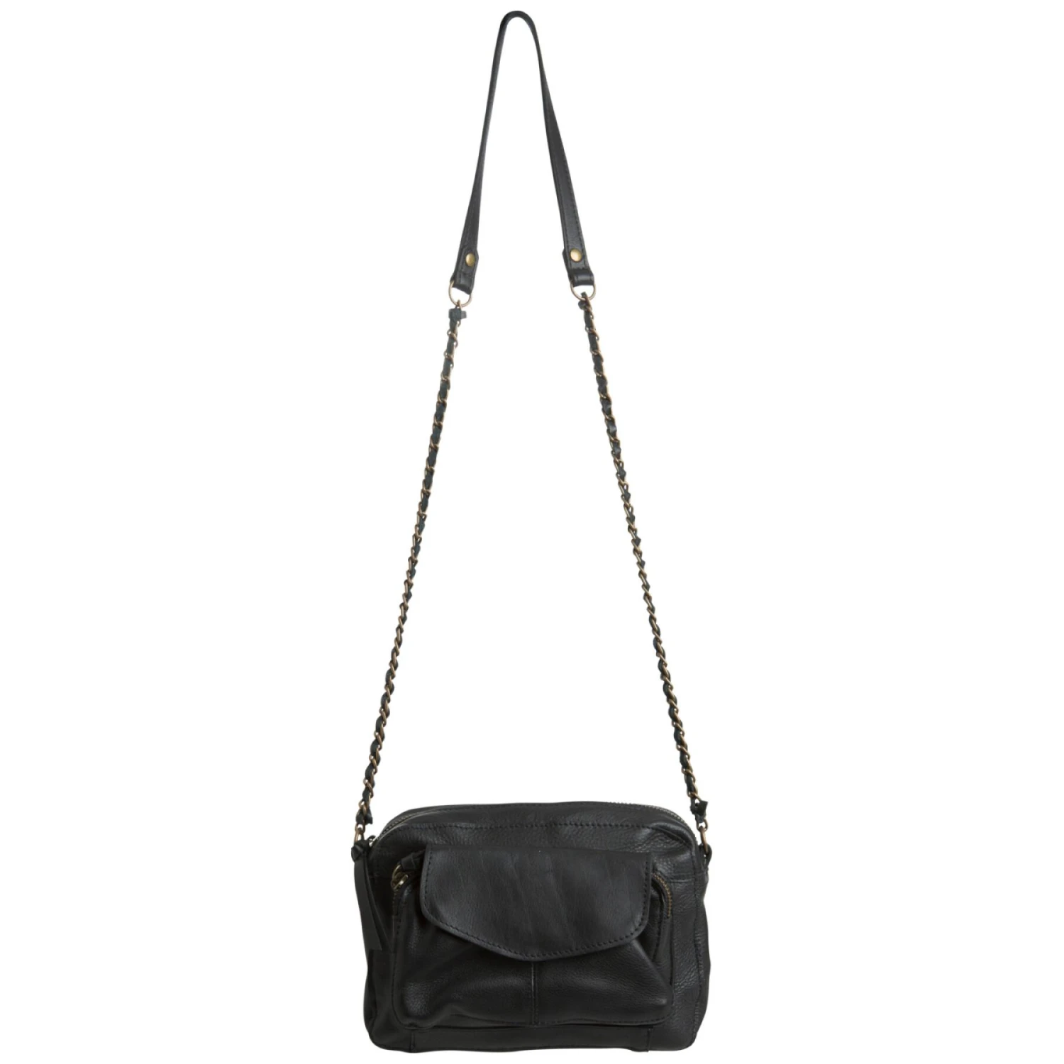 20 x 14 x 5,5 cm- Schoudertas- Leer- Rits- Voorvak- Gekruiste kettingriem