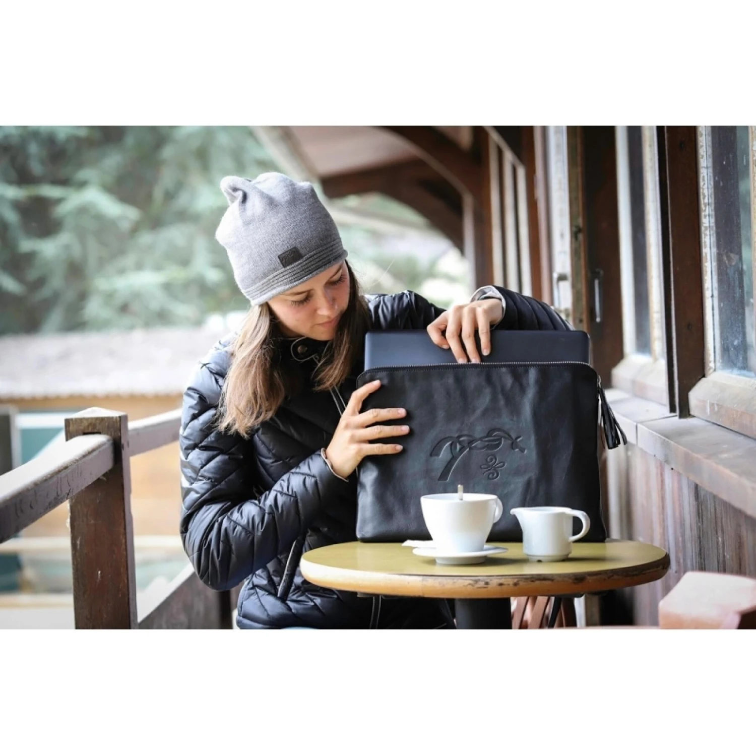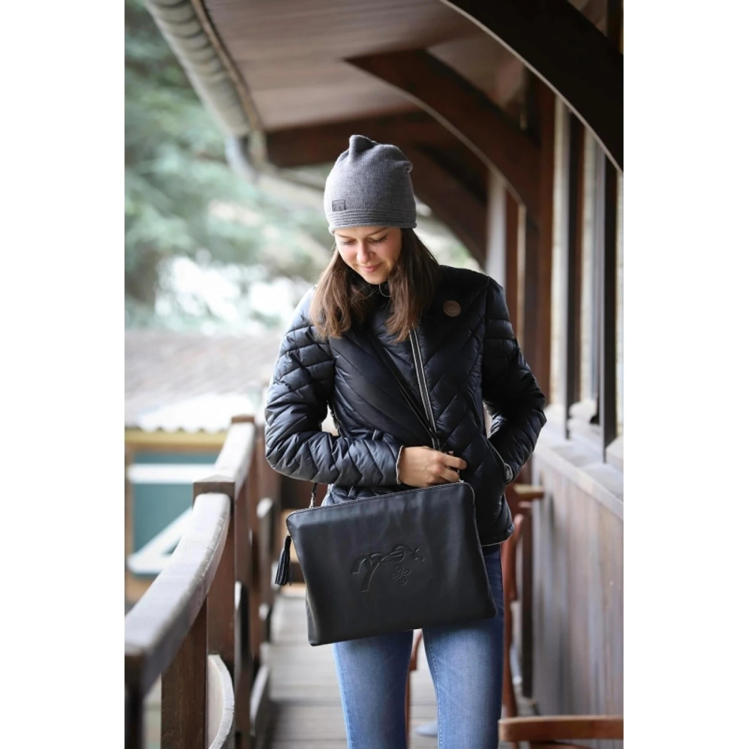 Maak het mooi en eenvoudig tegelijk! Dat is het geheim van onze slanke clutch bag, groot formaat en ook verkrijgbaar in klein formaat. Het is een perfect accessoire om alle kleine dingen van het dagelijks leven mee te nemen en om alles in een grote handtas te … Het Penelope-logo is subtiel in reliëf aangebracht in het mooie gladde leer. Het tasje sluit met een zilveren rits en is versierd met een pompon van fijne leren bandjes. Het tasje heeft ook een leren riempje dat aan de buitenkant is bevestigd met een klein zilverkleurig karabijnhaakje.Verkrijgbaar in zwart en cognacAfmetingen : 37 cm x 26 cm100% rundleer en roestvrijstalen gespOnderhoud : De Penelope lederwaren zijn gemaakt in een prachtig natuurlijk volnerfleer uit de ruitertraditie. Het is niet verwonderlijk dat het hectische leven dat ze zal leiden, haar met een paar kleine sporen…