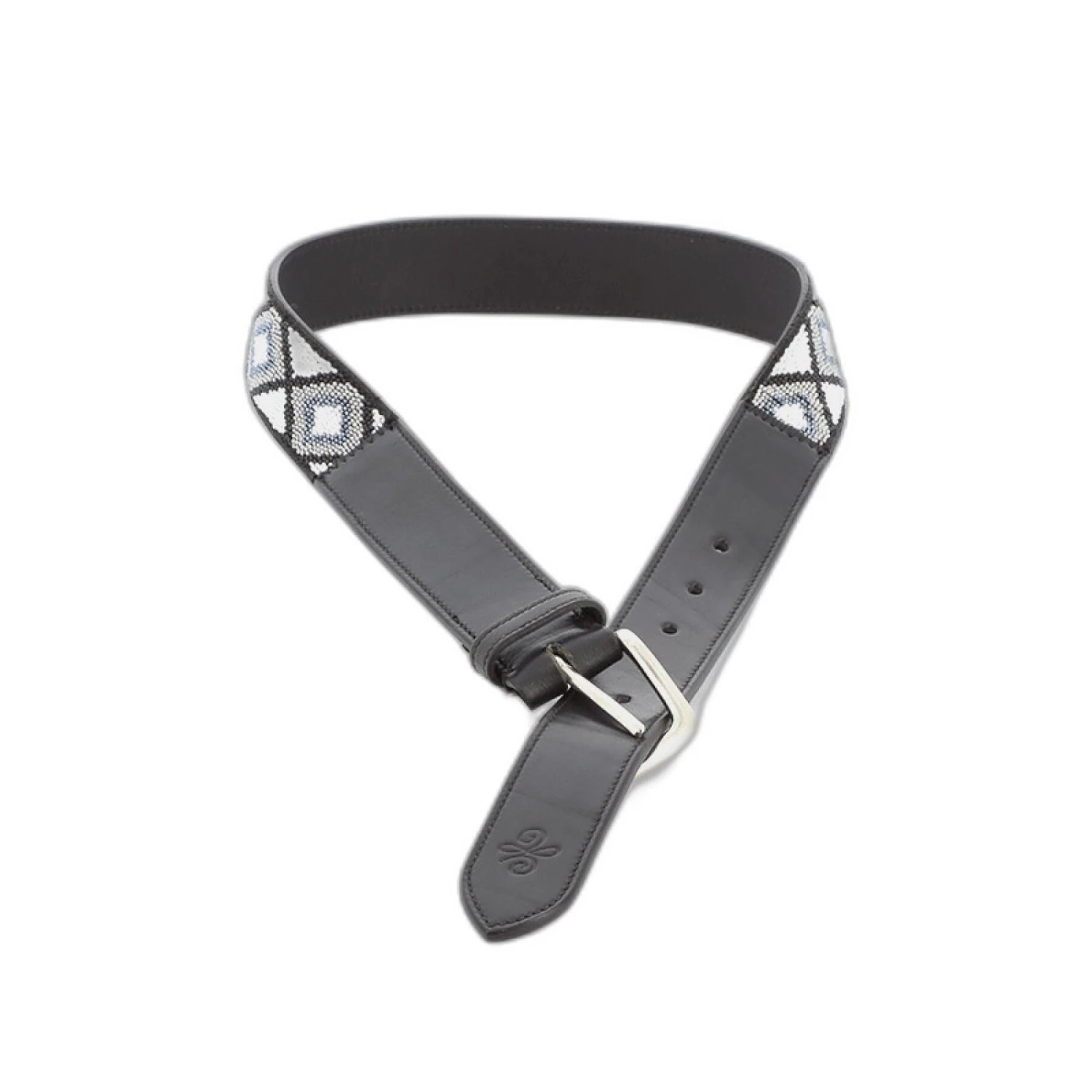 De Pearl Penelope riem is gemaakt van leer met een ingenaaide kraleninzet. De kleuren en patronen van de kralen veranderen naar gelang van de kleur van het leer, hoewel zij dezelfde inspiratie blijven behouden. De gesp is zilver. Samenstelling: 100% rundleder en 100% roestvrij stalen gesp.