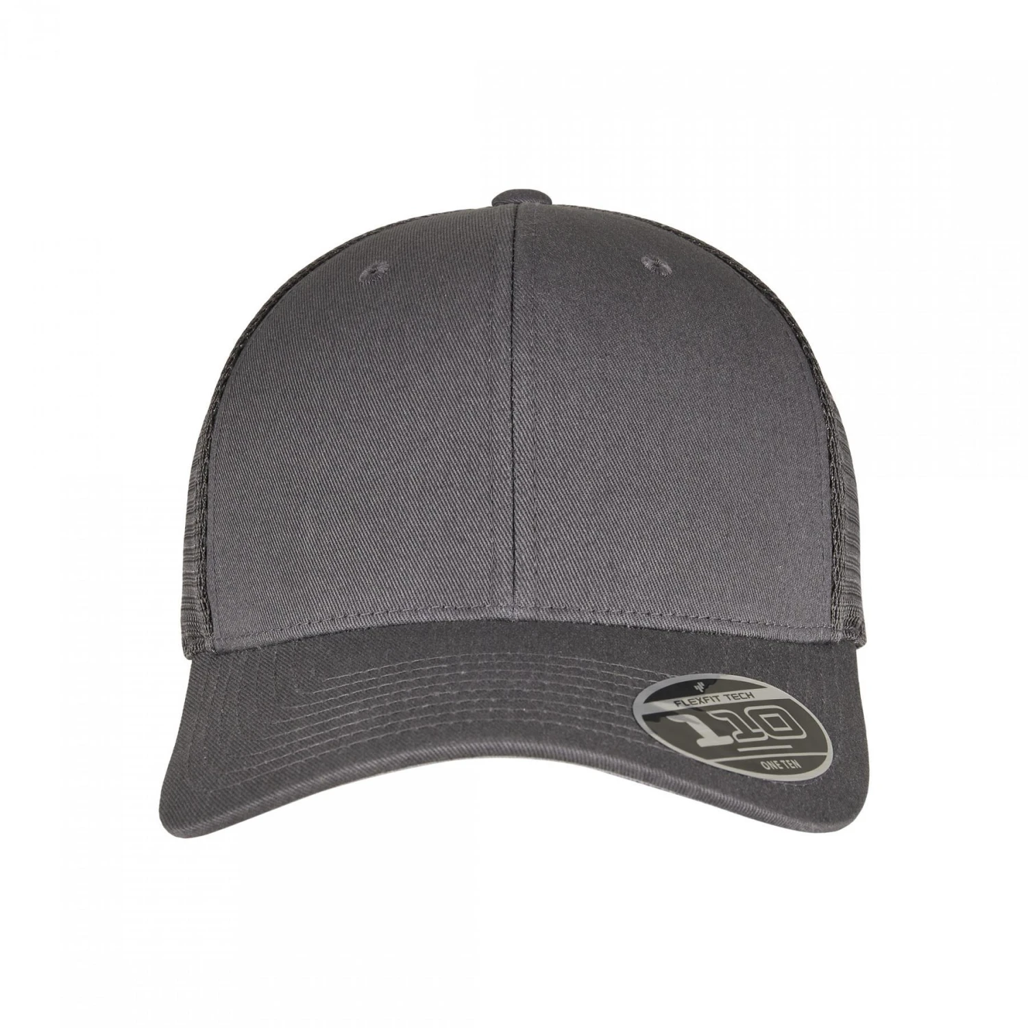 Een traditionele truckerhoed met een klassiek ontwerp: de voorkant is gemaakt van ondoorzichtig katoen, de achterkant van transparant polyester gaas. Het vizier is voorgevouwen en toont de acht soorten decoratieve stiksels. De truckerhoed is één maat en kan eenvoudig worden aangepast door de kleurgetrouwe sluiting aan de achterkant van het hoofd. De geïntegreerde Flexfit-technologie zorgt voor een uitstekend comfort.
