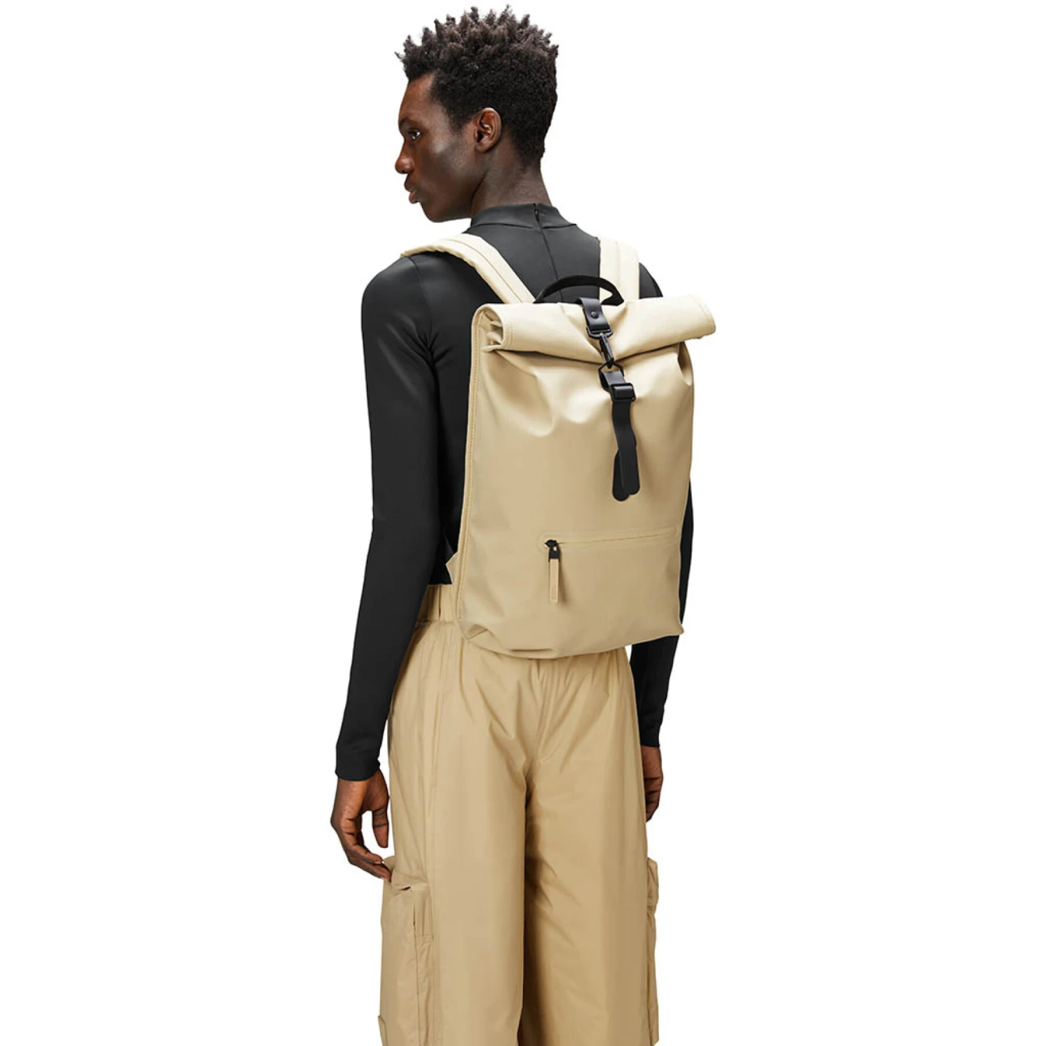 De Rolltop rugzak is gemaakt van Rains’s kenmerkende waterdichte PU-stof, ontworpen om draagkracht, duurzaamheid en een zacht gevoel te bieden.