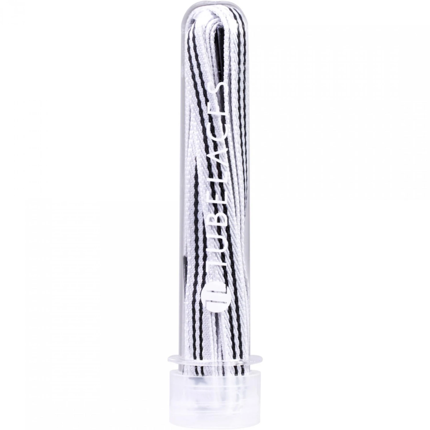 De witte platte veters van TubeLaces zijn verkrijgbaar in veel verschillende kleuren. Ze zijn verpakt in een kleine herbruikbare plastic koker – Set van 5 stuks – Lengte: 130 cm – Breedte: 9 mmOberstoff 1: 100% Polyester, Breien, – GSM