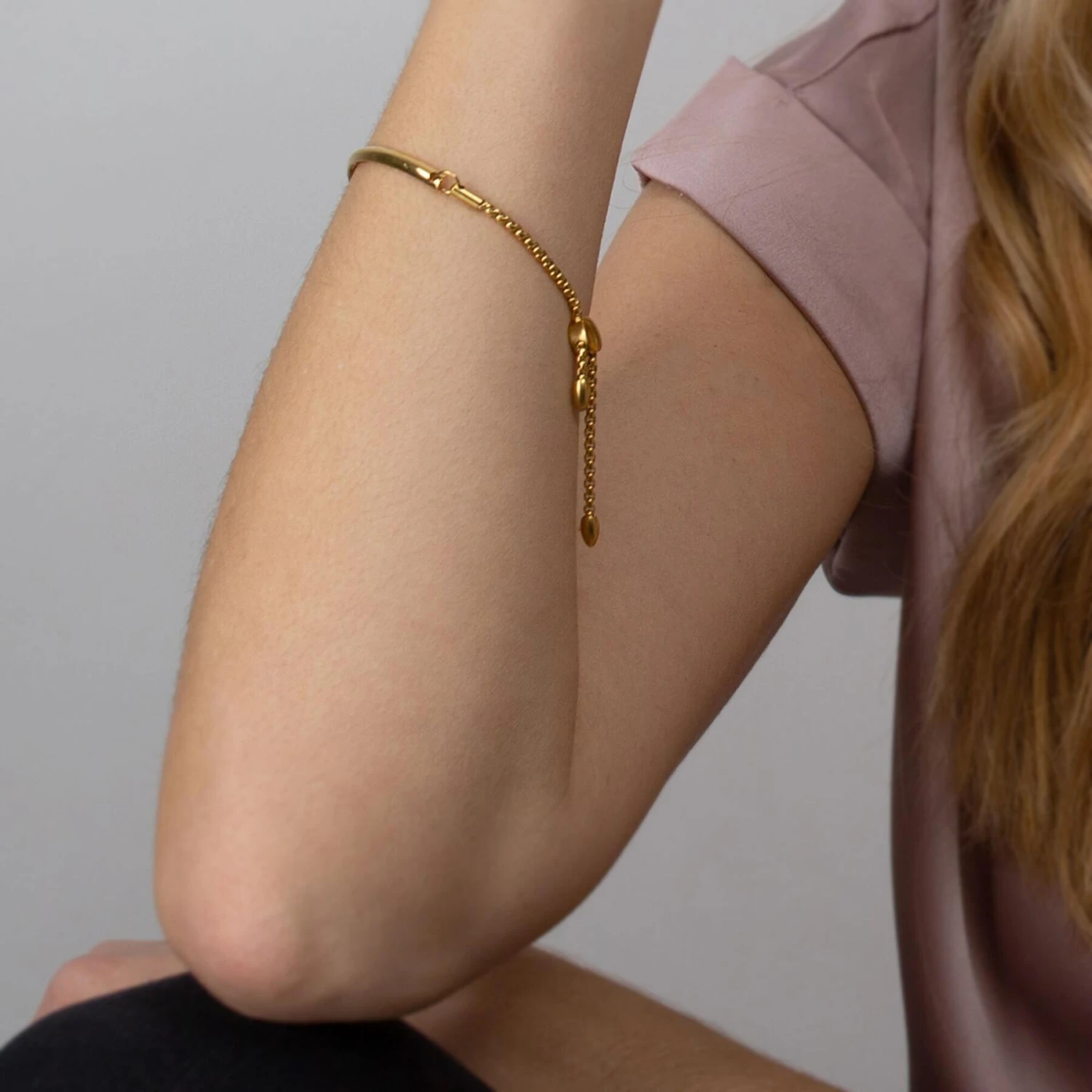De elegante armband met een gegraveerd deel is een moderne interpretatie van de klassieke armbanden en vult elke look aan. Dankzij de kogelsluiting kan de ketting voor elke pols individueel worden aangepast.