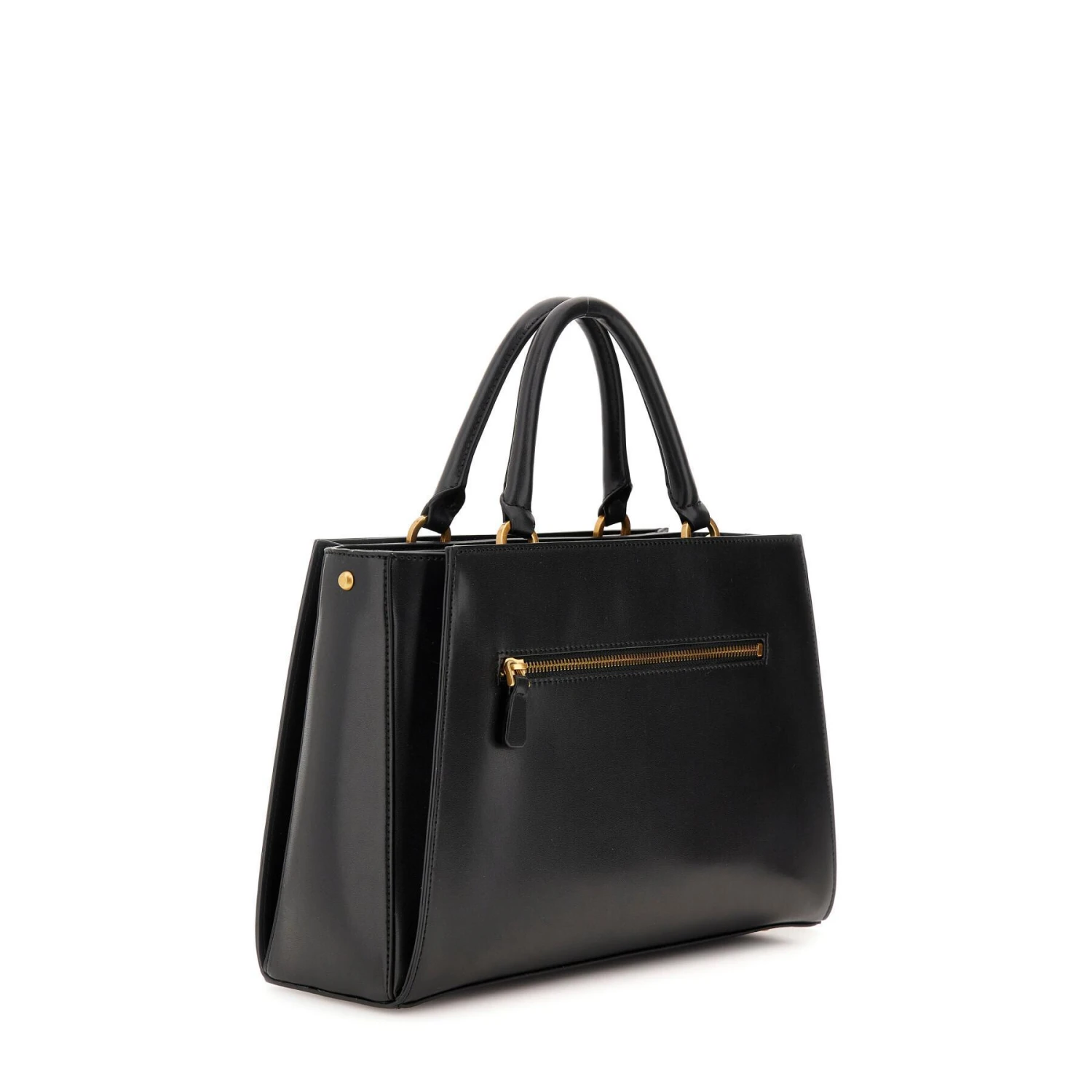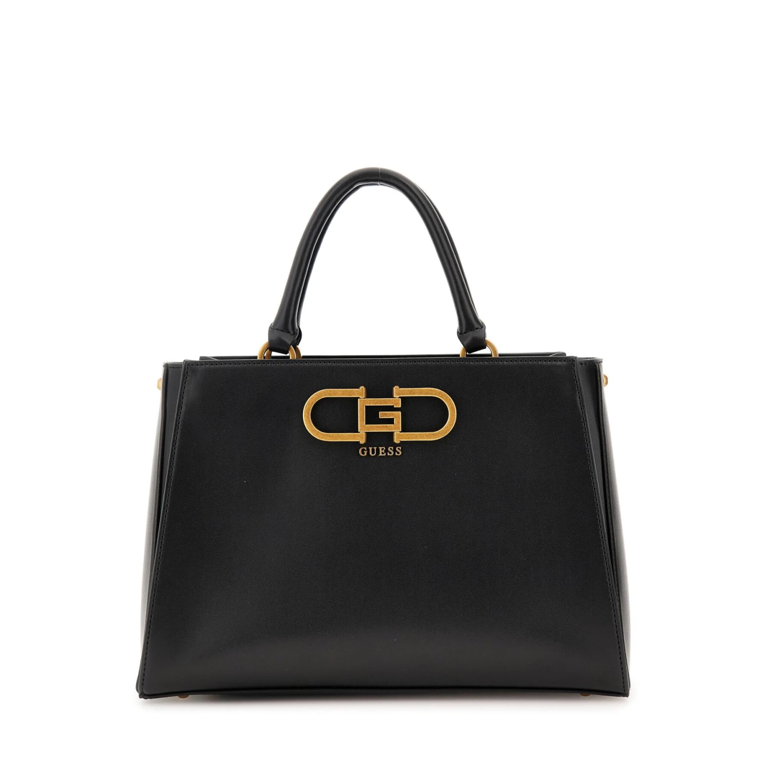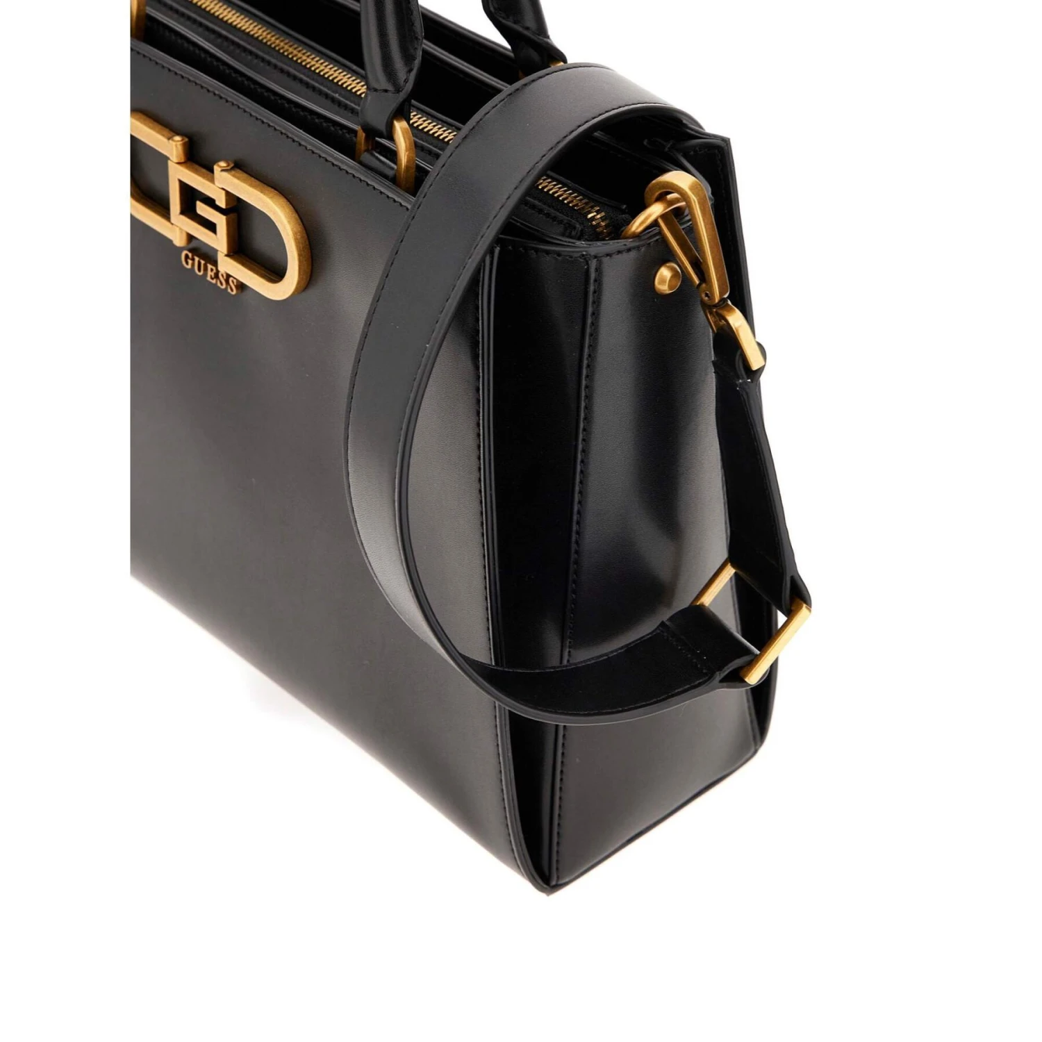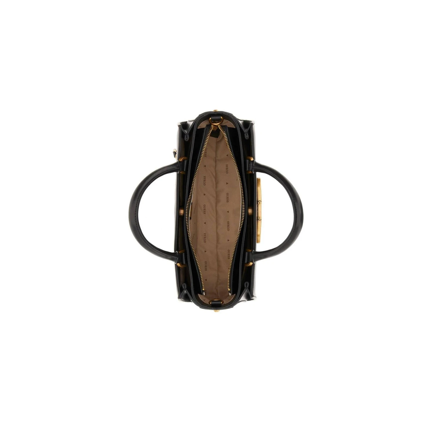 Breng je look tot leven met deze gestroomlijnde tas met Guess Fleet logo. Met geavanceerde opbergvakken met drukknoop- en ritssluiting, een binnenvak met ritssluiting en een buitenvak met ritssluiting hoef je je nooit meer zorgen te maken dat je je spullen kwijtraakt. Geniet van elegante distressed gouden hardware, een afneembare schouderriem, zwarte bies en metalen voetjes aan de onderkant. Klaar voor gebruik in een handomdraai dankzij de Guess branding en opgerolde handgrepen, je zult er elke dag naar grijpen.