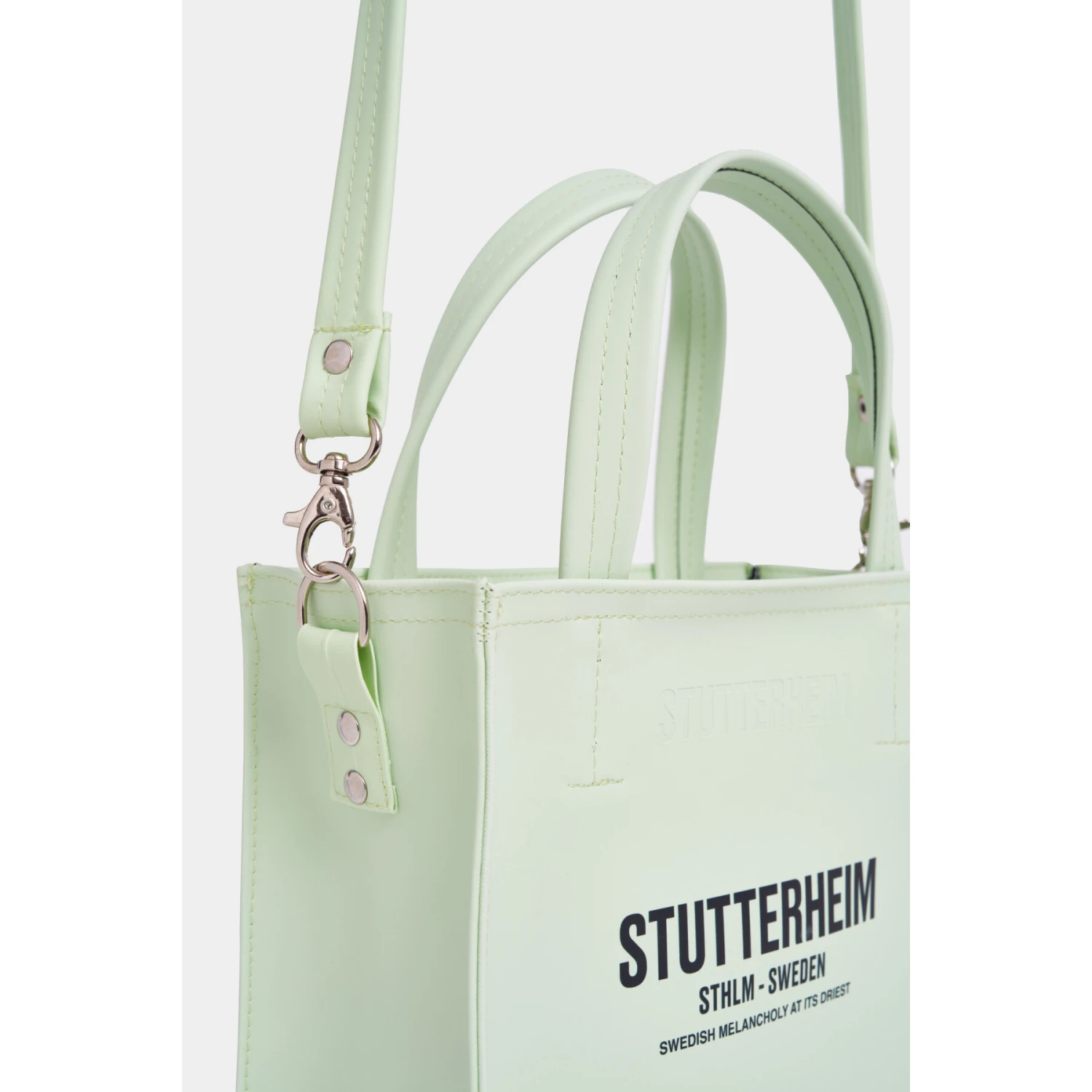 Biblio is een kleine handtas gemaakt van een dichte, robuuste waterdichte stof, met de perfecte afmetingen voor essentiële spullen zoals een telefoon, portemonnee enzovoort. Deze stijlvolle tas kan over de schouder of in de hand worden gedragen dankzij de handvatten aan de bovenkant. Een metalen ritssluiting op de bovenste opening helpt bij het beschermen van persoonlijke bezittingen, terwijl het Cordura-membraan zorgt voor de duurzaamheid van de tas.