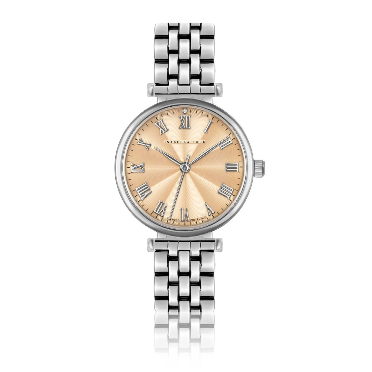 De Marie-Rose is een van de drie ultra-minimalistische uurwerken vanIsabella Ford. Met een prachtige sunray wijzerplaat in goud rose gecombineerd met Romeinse indexen is dit uurwerk ontworpen voor liefhebbers van zoete lekkernijen.